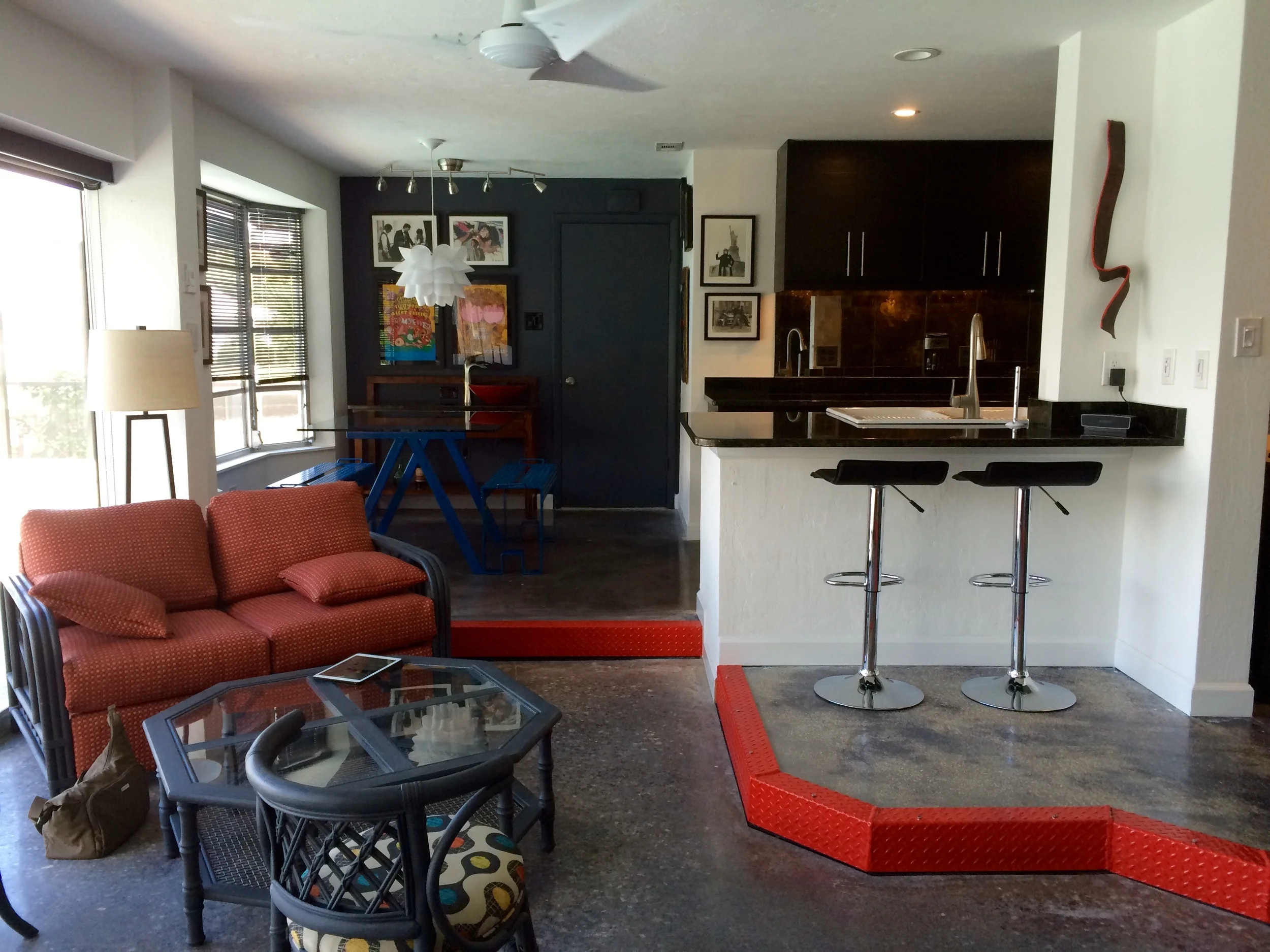 This contemporary vacation home in Punta Gorda, Florida is the latest Art Dallas residential collaboration. Combining the owner’s artwork, their rock and roll photograph collection and new art, we were able to create a package of artwork that kept the project on budget and ready in just 3 weeks. Our in-house welding department created metal furniture to work with the artwork and picture framing package. We printed a large 96 wide by 48 high direct to metal print for the living room, framed the owner’s art and selected additional artwork to complete an art package with the look and feel the owners wanted.